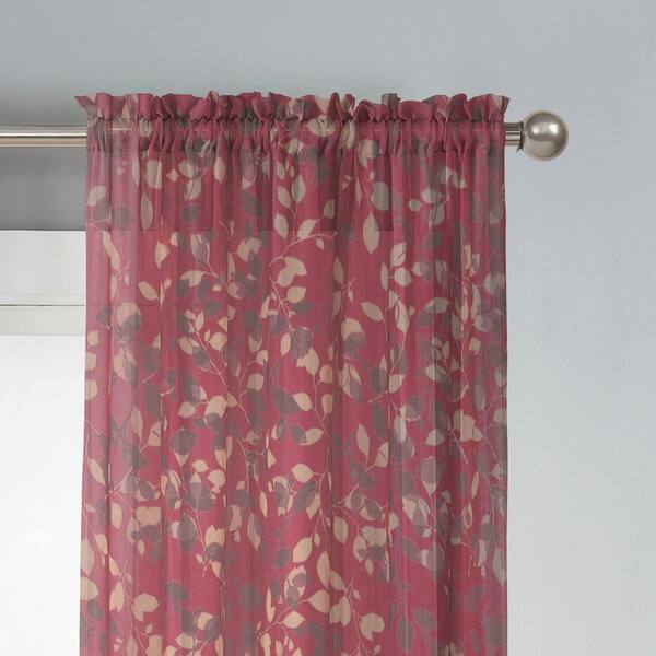 Sheer Pinehurst Printed 54 in. W x 84 in. L Rod Pocket Extra Wide Curtain Panel in Sheer Burgundy