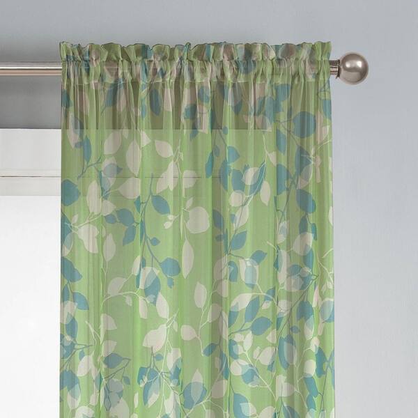 Sheer Pinehurst Printed 54 in. W x 84 in. L Rod Pocket Extra Wide Curtain Panel in Sheer Lime
