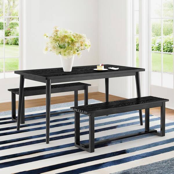 Windsor Black Wood Top 59 in. Rustic Urban Industrial Farmhouse 4-Legs Rectangle Solid Wood Dining Table for 6