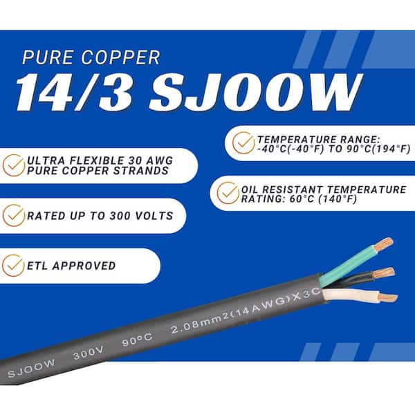 35 ft. 14/3 14-Gauge 3 Conductor 300-Volt Black SJOOW Cable Cord
