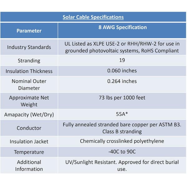 • 8 AWG Gauge 50 ft. Black + 50 ft. Red PV Solar Cable