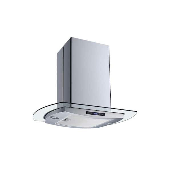30 in. 500 CFM Convertible Island Mount Range Hood in Stainless Steel and Glass with Touch Control and Carbon Filters