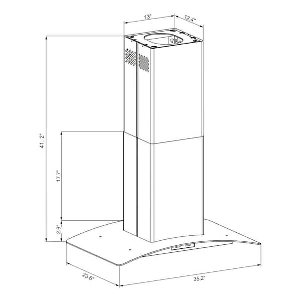 36 in. 480 CFM Convertible Island Mount Range Hood in Stainless Steel with Baffle Filters and Touch Control