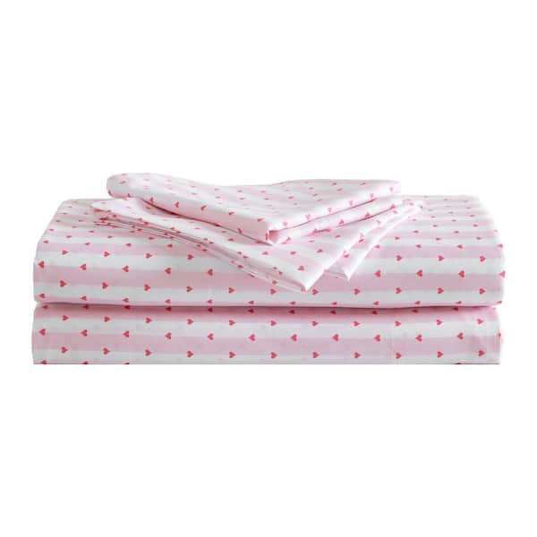 Wonderland Stripe 4-Piece Bright Pink Microfiber Full Sheet Set