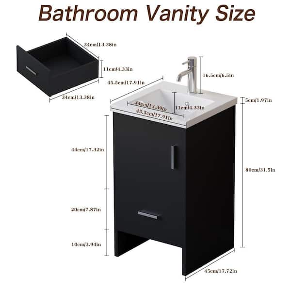 18 in. W x 18 in. D x 31.5 in. H Single Sink Freestanding Bathroom Vanity in Black with White Top and Faucet