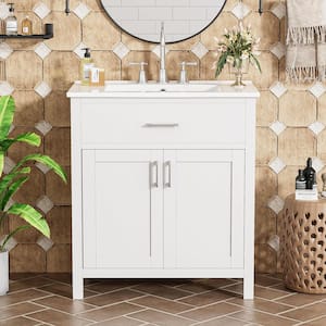 18 in. W x 18 in. D x 32 in. H Single Sink Bathroom Vanity in Black with White Top and Faucet