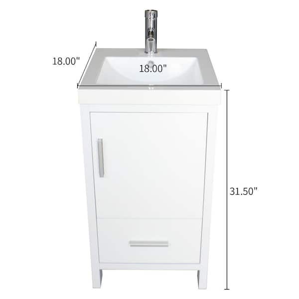 18 in. W x 18 in. D x 32 in. H Single Sink Bathroom Vanity in White with White Top and Faucet