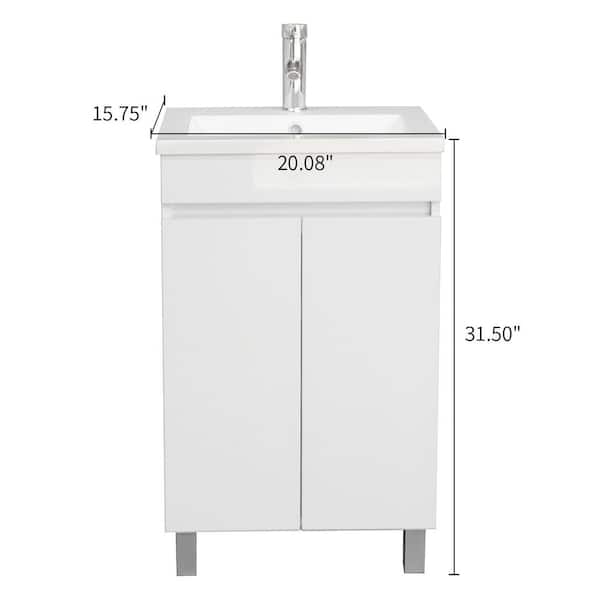 20.1 in. W x 33 in. H x 16 in. D Single Sink Bathroom Vanity in White with White Top and Faucet