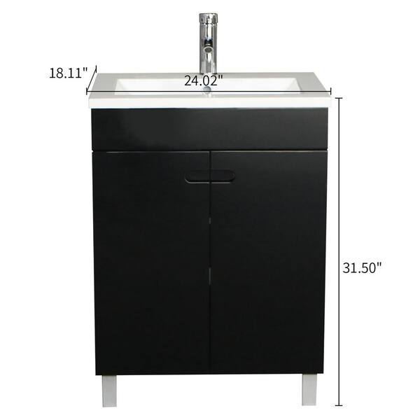 24 in. W x 18 in. D x 31.5 in. H Single Sink Freestanding Bathroom Vanity in Black with White Top and Faucet