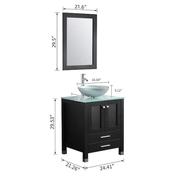 24 in. W x 21.7 in. D x 29.5 in. H Single Sink Bath Vanity in Black with Glass Top and Mirror
