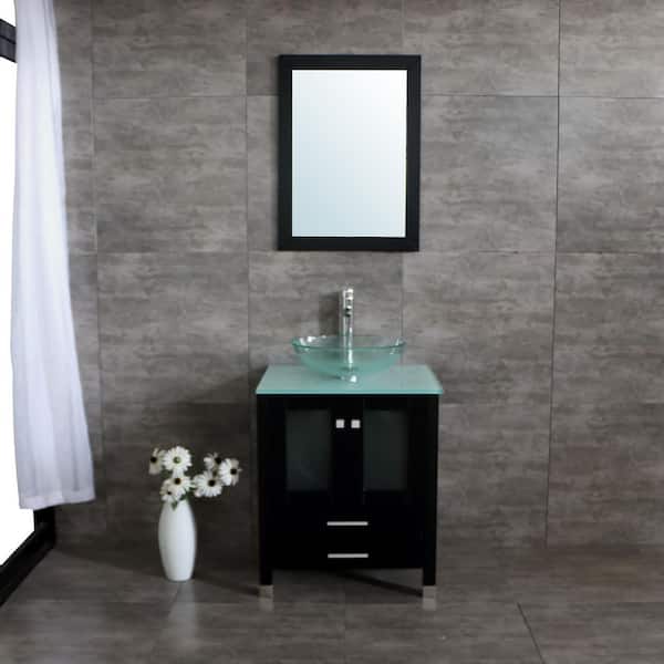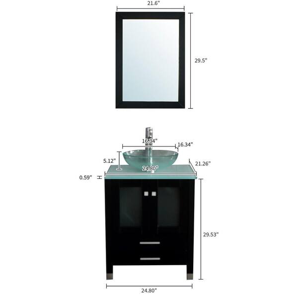 24 in. W x 21.7 in. D x 29.5 in. H Single Sink Bath Vanity in Black with Glass Top and Mirror