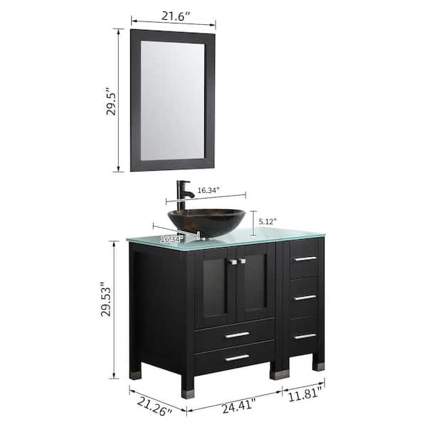36 in. W x 21.3 in. D x 29.1 in. H Single Sink Bath Vanity in Black with Glass Top and Mirror