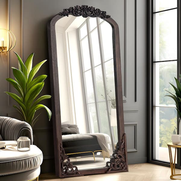 21 in W x 64 in. H Arch Ornate Mirror Accent Mirror Solid Wood Full Length Mirror Charcoal