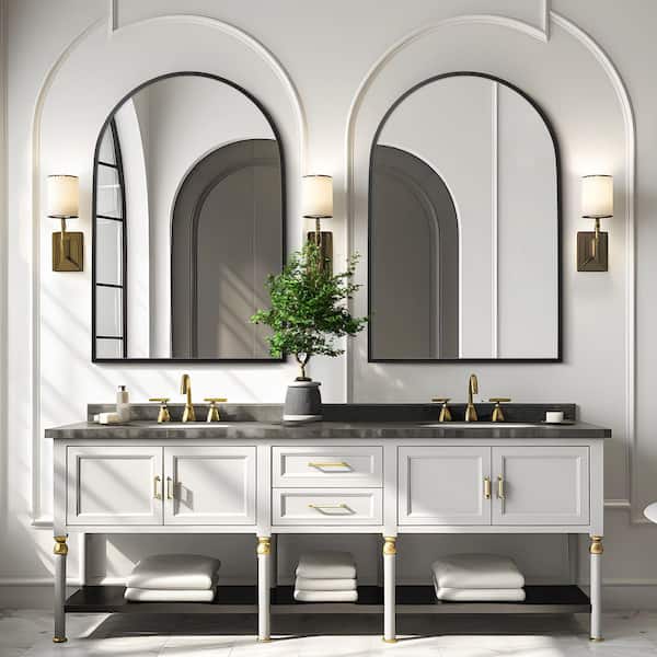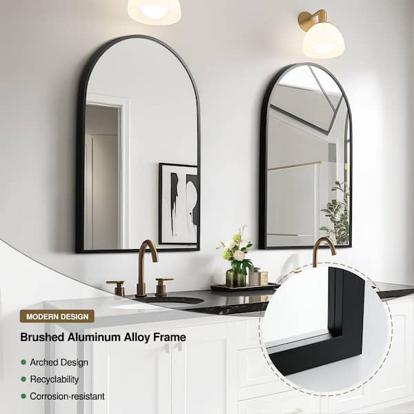 24 in. W x 36 in. H Arch Metal Modern Bathroom/Vanity Mirror Decorative Leaning Mirror Black