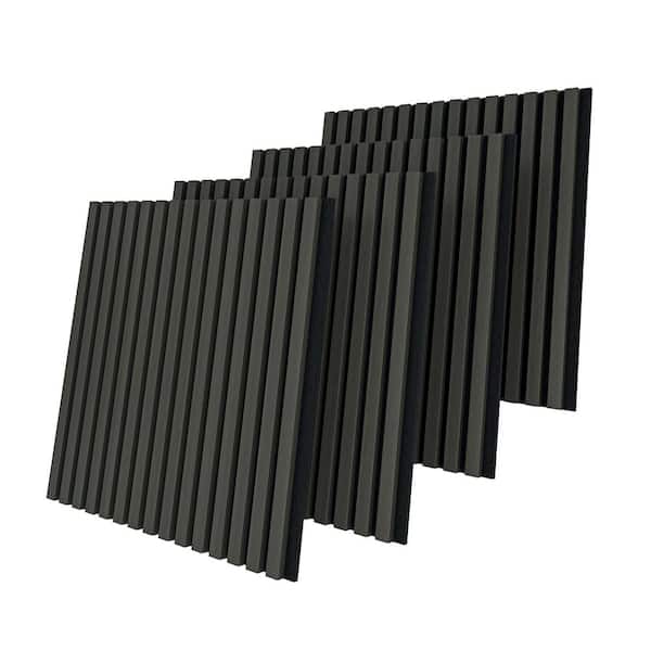 Black 4-Piece Acoustic Soundproof Slat Wall Panels 3D Decorative Wall Paneling