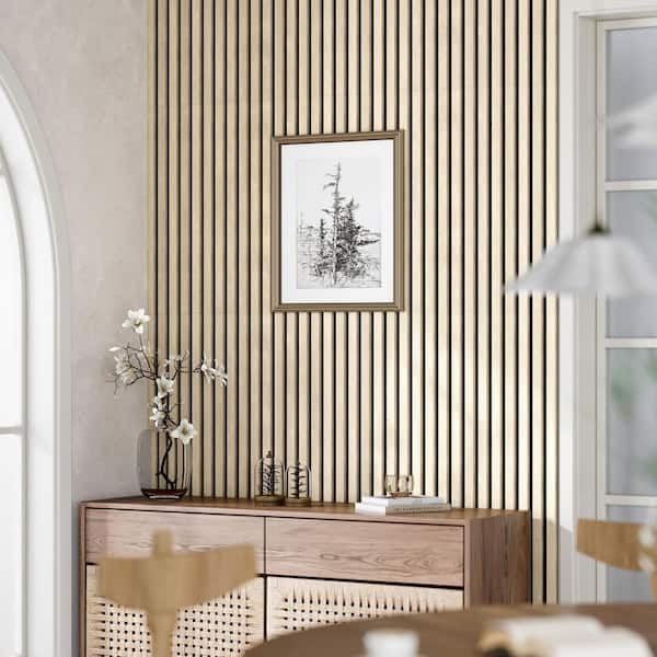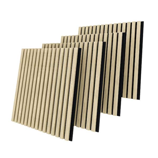Natural Wood 4-Piece Acoustic Soundproof Slat Wall Panels 3D Decorative Wall Paneling