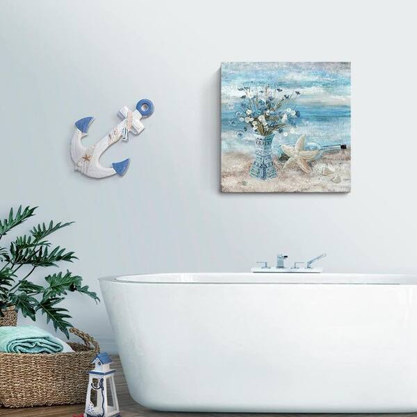 Wood Framed Blue Ocean Theme Canvas Print 24 in. x 24 in.