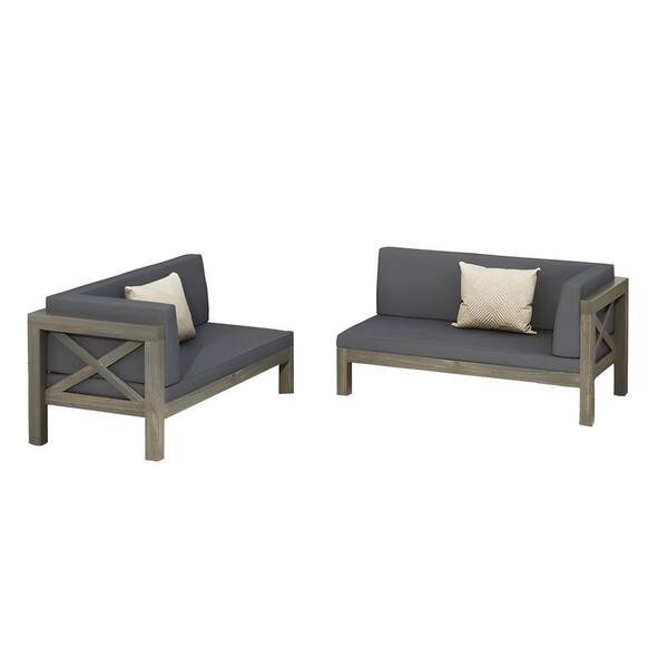 Wood Left - Right Dining Corner Bench with Gray Cushions (2-Piece)