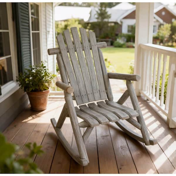 Wood Outdoor Rocking Chair, Porch Rocker Chair in Light Gray