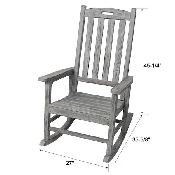 Wood Outdoor Rocking Chair With Wide Seat and Tall Backrest, High Back Smooth Rocking Chairs for Outdoor, Grey