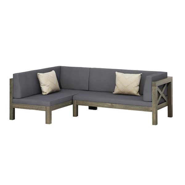 Wood Right Dining Corner Bench with Gray Cushions (2-Piece)