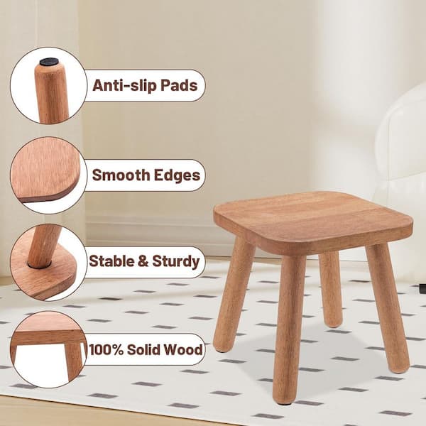 Wooden 1 Step Stool with Four Assembled Legs Non-Slip Pads Walnut Color Supports Up to 300 lbs.