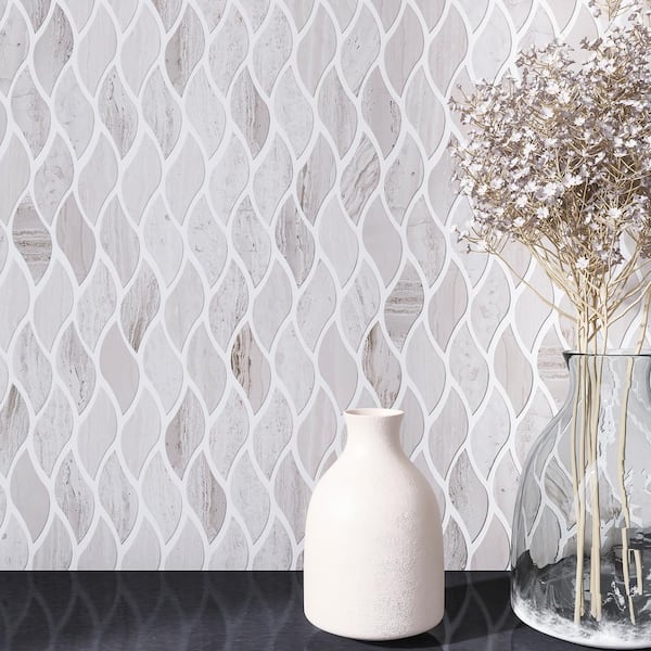 Wooden Beige 11.23 in. x 9.85 Geometric Polished Marble Mosaic Tile Sample