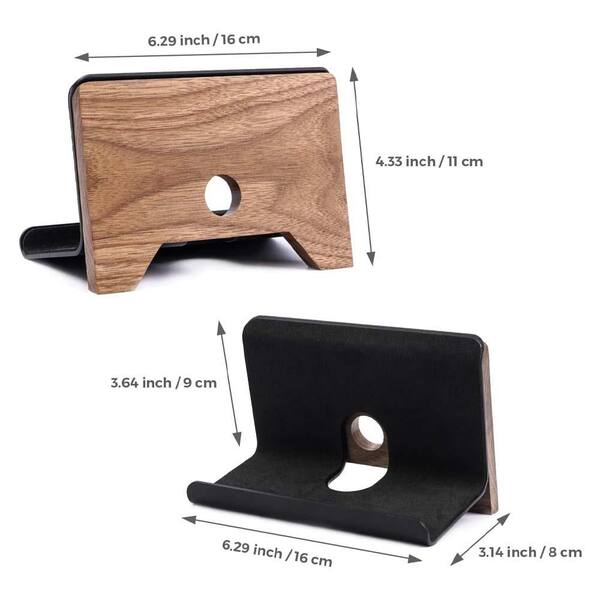 Wooden Black Walnut iPad Laptop Stand for Desk with Cable Management and Anti-Slip Protection Pad