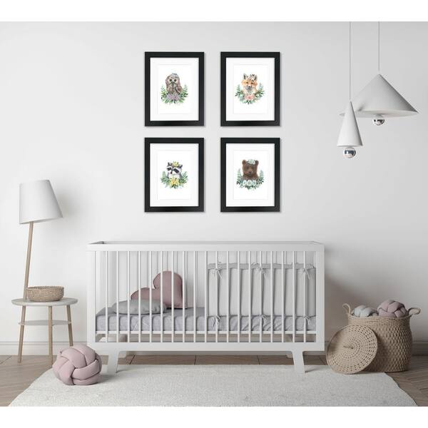 "Woodland Littles 1" Set of 4 Framed Prints with Mat in Black - 20 in. x 16 in.