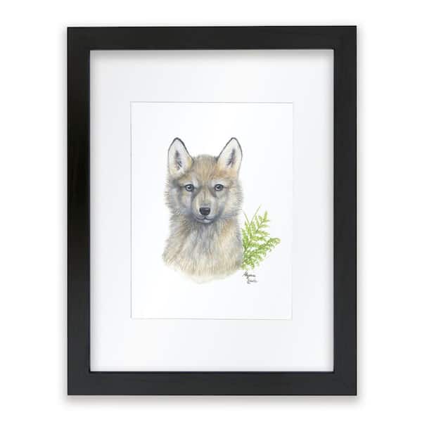Woodland Littles 2 "Wolf" by Alyssa Lewis Individual Black Framed with Mat Animal Art Print 14 in. x 11 in.