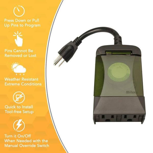 15-Amp 24-Hour Outdoor Plug-In Lighting Dual-Outlet Mechanical Timer, Black