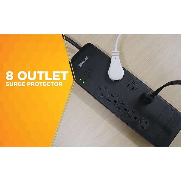6 ft. 8-Outlet 3540-Joule Surge Protector Power Strip with Sliding Safety Covers and Circuit Breaker