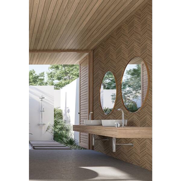 Woods and Wicker Collection Brown Herringbone Wood Effect Matte Finish Vinyl on Non-woven Non-pasted Wallpaper Sample