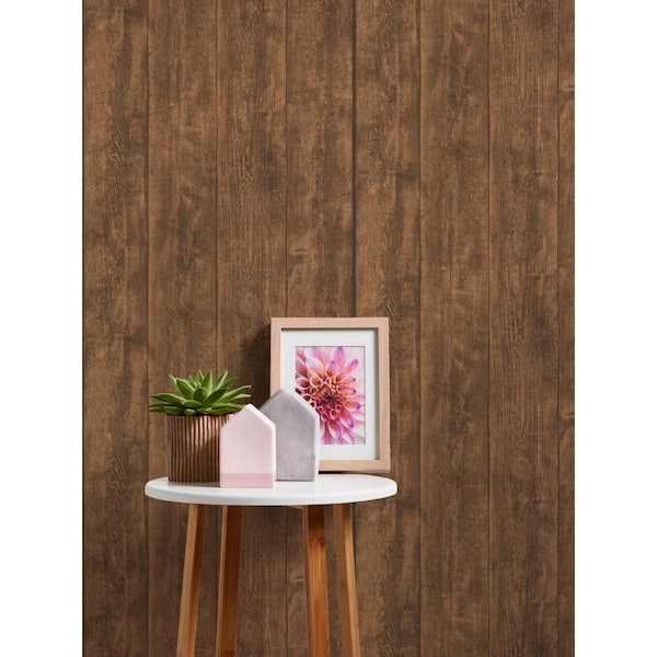 Woods and Wicker Collection Brown Vintage Wood Effect Matte Finish Vinyl on Non-woven Non-pasted Wallpaper Sample