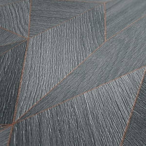 Woods and Wicker Collection Dark Grey Geometric Wood Effect Matte Finish Vinyl on Non-woven Non-pasted Wallpaper Sample