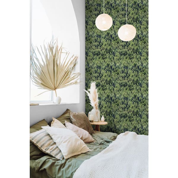 Woods and Wicker Collection Green Pine Forest Matte Finish Vinyl on Non-woven Non-pasted Wallpaper Sample
