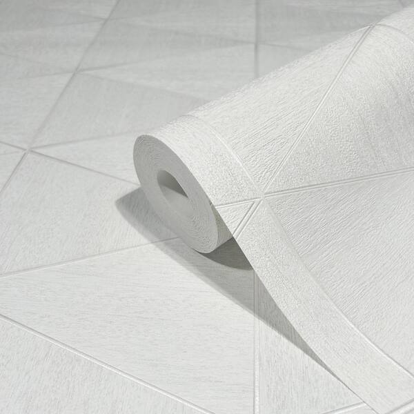 Woods and Wicker Collection White Triangular Wood Tile Matte Finish Vinyl on Non-Woven Non-Pasted Wallpaper Roll