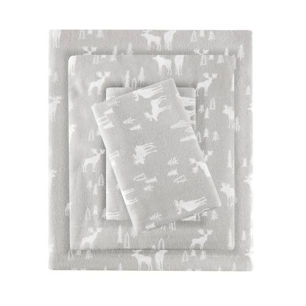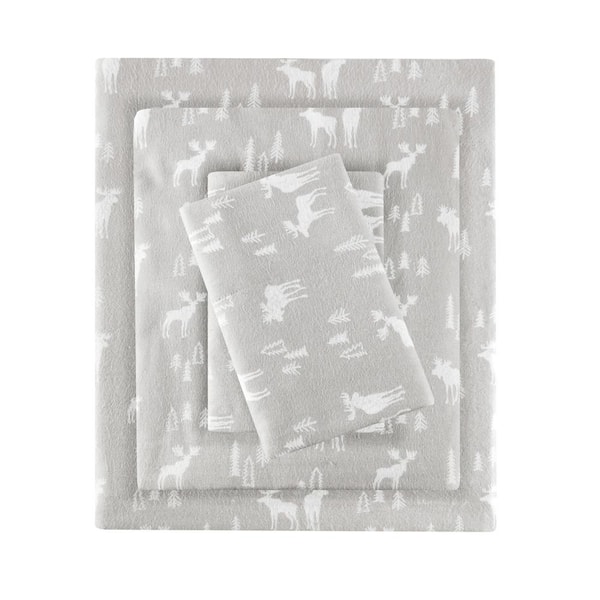 Cotton Flannel 4-Piece Grey Moose Cotton King Sheet Set