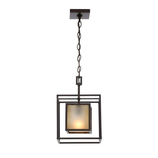 Hilden Collection 1-Light Aged Bronze Hanging Pendant with Tea Glass Shade
