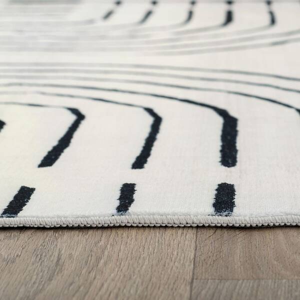 Bohemian Lines Washable Non Slips Ivory 2 ft. x 10 ft. Runner Rug