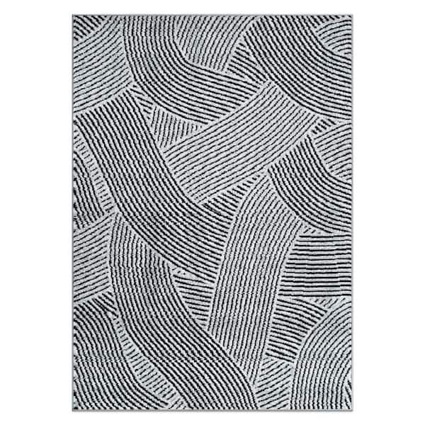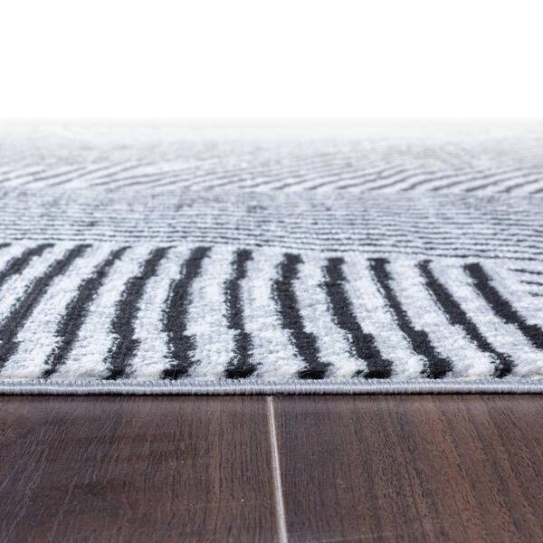 Bohemian Stripe Cream 7 ft. 10 in. x 10 ft. Waves Area Rug