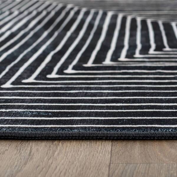 Bohemian Stripes Washable Non Slip Black 2 ft. x 3 ft. Area Rug