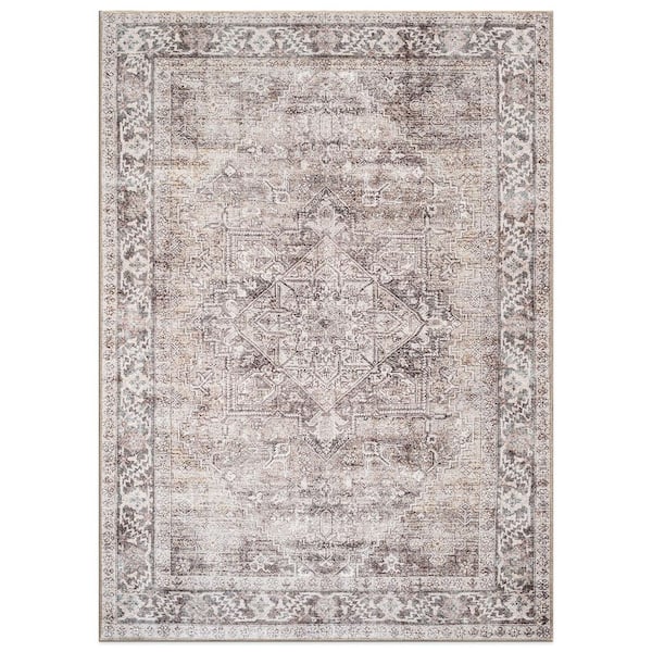 Calista Medallion Machine Washable Beige 10 ft. x 14 ft. Area Rug