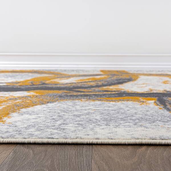 Contemporary Abstract Circles Yellow 2 ft. x 7 ft. Area Rug