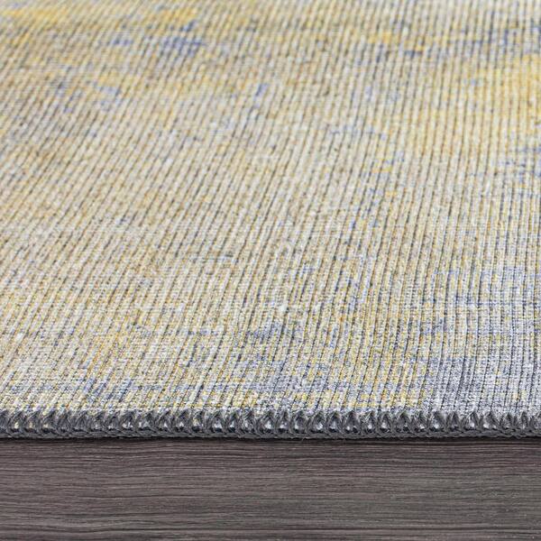 Contemporary Abstract Machine Washable 2'6"x10' Yellow Runner Rug