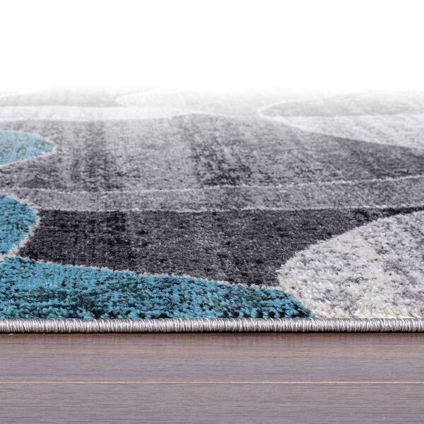 Contemporary Blue 2 ft. x 7 ft. Distressed Circle Runner Rug