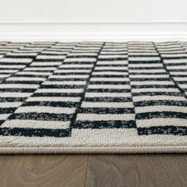 Contemporary Checkered Area Rug Black 5 ft. x 7 ft. Area Rug