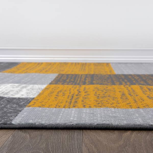 Contemporary Distressed Boxes Mustard 5 ft. x 7 ft. Area Rug
