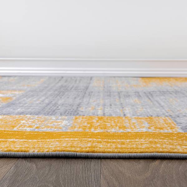 Contemporary Distressed Design Yellow 2 ft. x 7 ft. Area Rug
