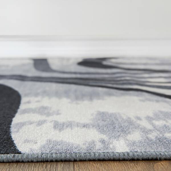 Contemporary Distressed Gray 2 ft. x 7 ft. Abstract Lines Non Slip Runner Rug
